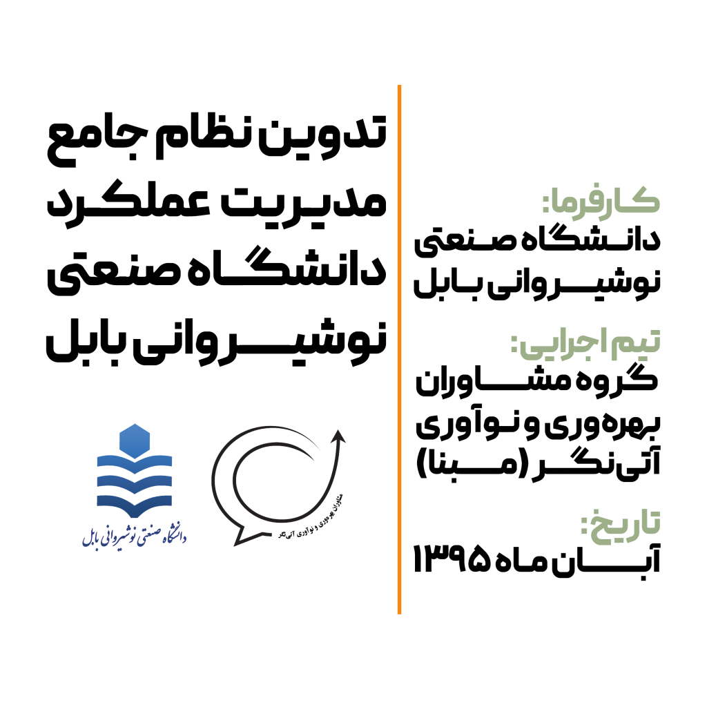 این طرح با هدف تدوین و یکپارچهسازی نظام مدیریت عملکرد دانشگاه صنعتی نوشیروانی بابل مرتبط با برنامه راهبردی و عملیاتی دانشگاه و سیاستهای اجرایی وزارت علوم، تحقیقات و فناوری اجرا شده است. چارچوب طرح در راستای شناسایی، آسیبشناسی، بهبود و یکپارچهسازی شاخصها و فرآیندهای مرتبط با نظام مدیریت عملکرد (EMS) دانشگاه در چهار مرحله زیر اجرایی شده است: